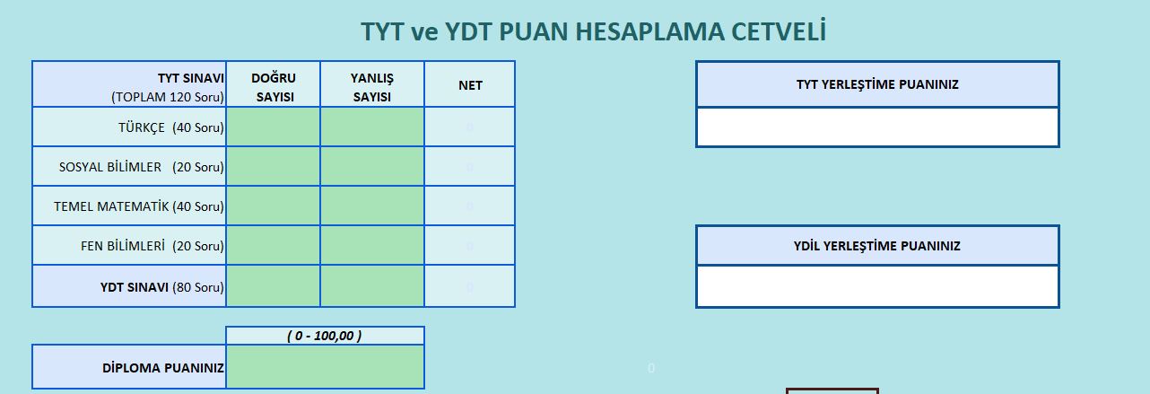 TYT ve YDil Puanı Hesaplama Tablosu click to download